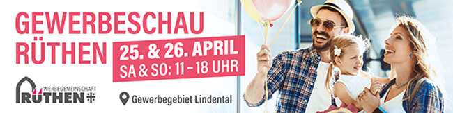 Am 25. und 26. April 2026 sind wir auf der Gewerbeschau im Gewebegebiet Lindental in Rüthen vertreten.